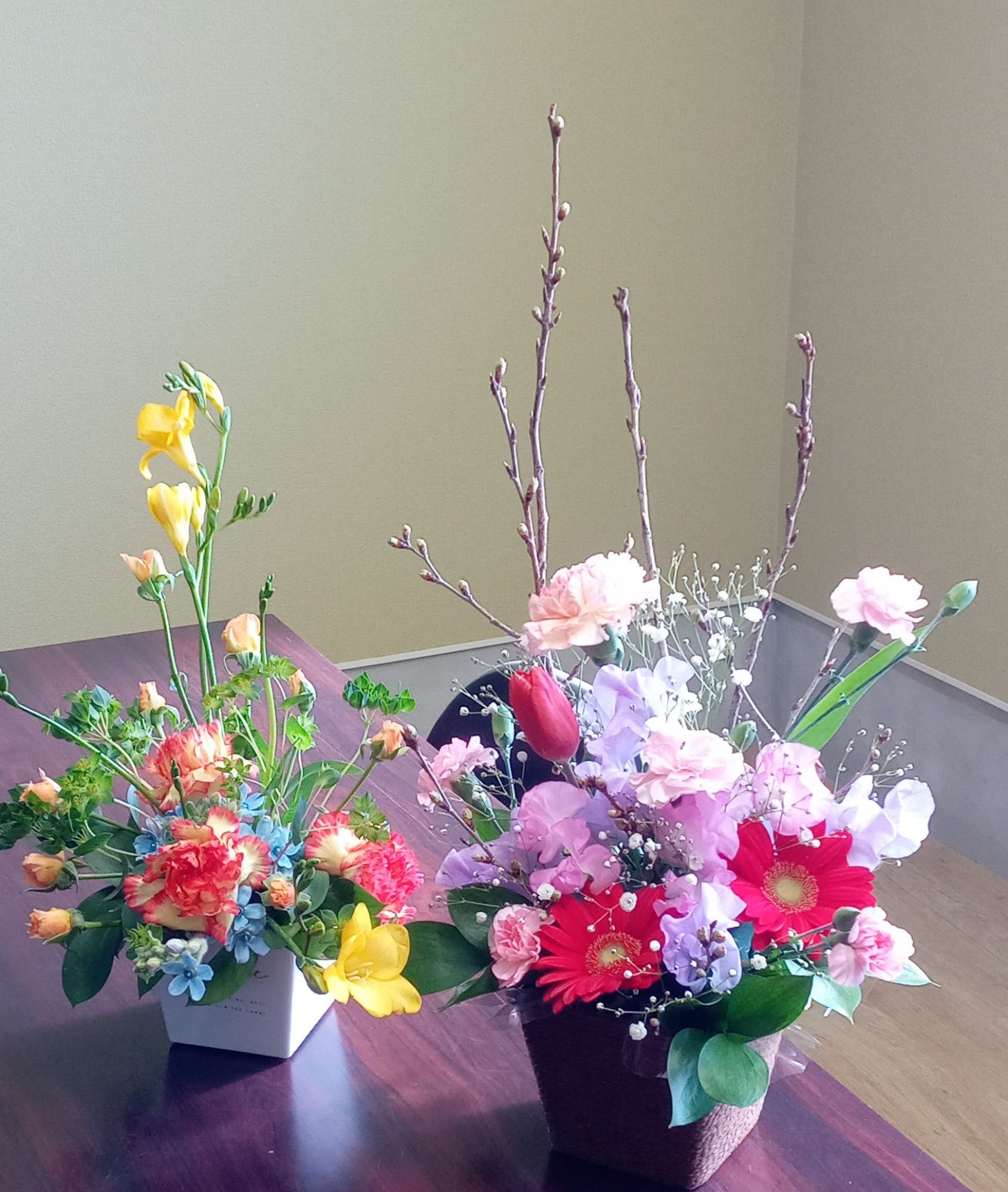 今日、アレンジ教室を開催しました。春の花、桜、チューリップ、スイートピーなどを使い、可愛らしい、アレンジが出来ましたよ。次回は4月開催となりますので、ご興味がある片は、お店まで、お問い合わせ下さいね。