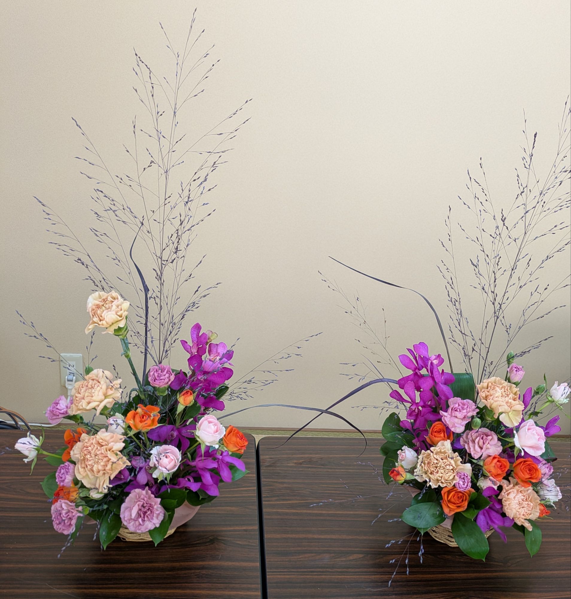 本日16日、下山佐公民館で出張アレンジ教室を開催させて頂きました。秋の感じでと言うリクエストがあったので、秋を感じられる花材を使って、アレンジフラワーを作りました。